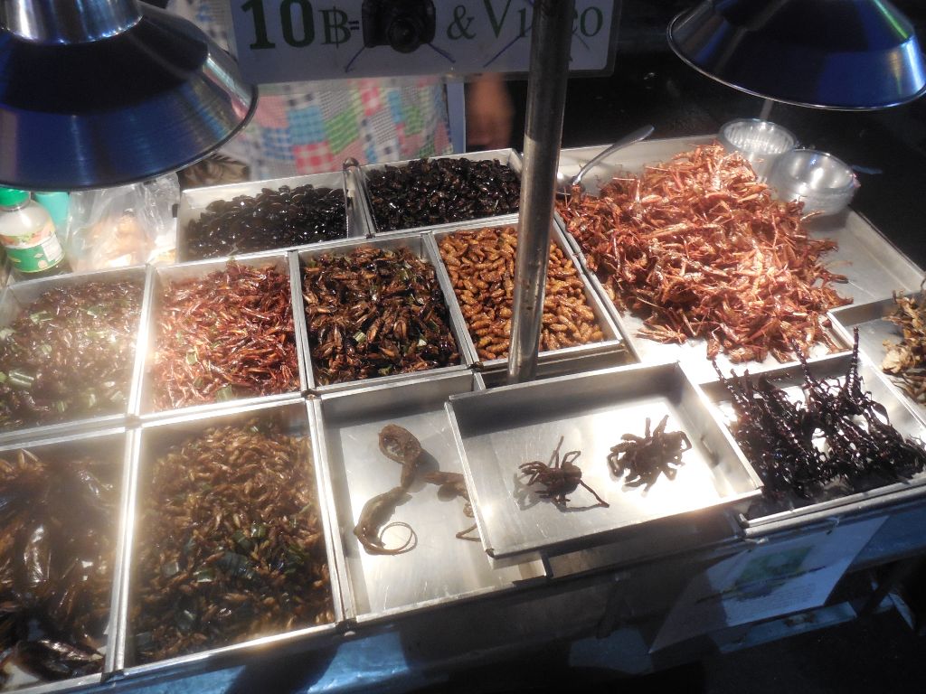 I stayed in Bangkok for two days and I must say it rained pretty often. I took a taxi to the center, because I wanted to eat some insects. It was on my bucket list. But it was hard to explain the driver to bring me to a place where they sell insects. I asked for a pen and a piece of paper and even drew some bugs for him and made eating gestures. He looked at me like I was explaining politics to a five year old. Then eventually I drew a comic for him. It took me some time, but he looked at it fiercely and than he smiled, he understood. Jeej!! ;-) He brought me to this market at Khao San Road. There I saw a woman with a stand full of deep fried bugs, spiders and scorpions. “You want to try” she asked me as soon as I looked at the horrible things in front of me. My mind said: “Nooooo”, but somehow my mouth said: “Yes!” There I ate a maggot. People who know me, also know how much I like insects hahaha #beingsarcastic. So shivers went all over my back. The taste was quite ok and it was just crunchy, but still… it was a freaking maggot! All the way I kept on tasting the maggot in my mouth and I just couldn’t get rid of the taste.
