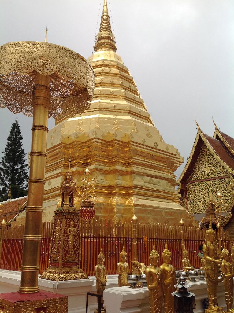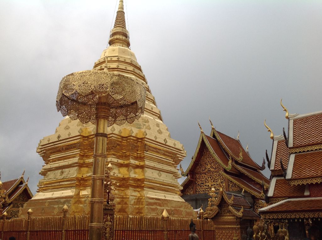 The next day I went to Wat Phrathat Doi Suthep, which is a buddhist temple on top of a mountain. It was really special. I went there by Songthaew and after arrival I had walked the huge 309 step stairs up hill. When you finally arrive there you see one huge gold Chedi and people were walking around a special white flower in there hand. I joined them. After one round I left the path around the Chedi, only to find out that it is common to walk three rounds. I went back in there and I did the three times. :-)