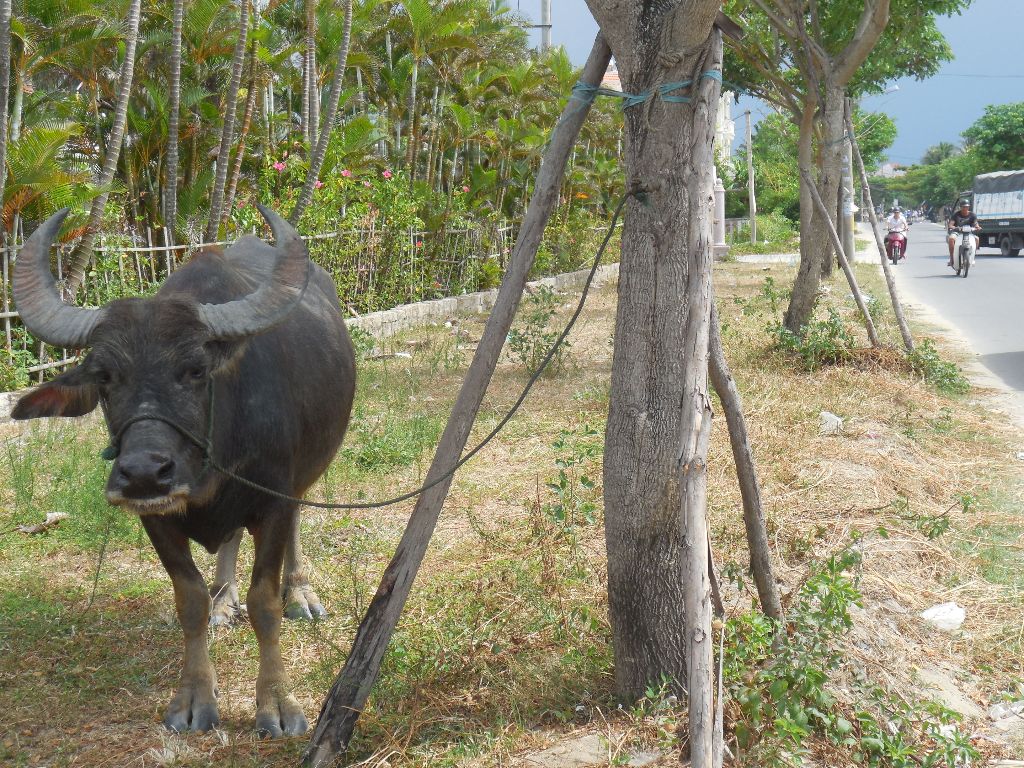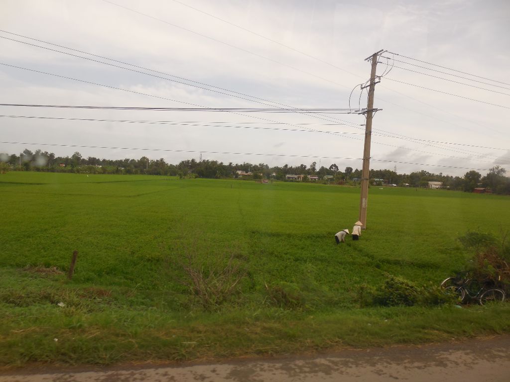 Watching at the scenery passing by, I noticed the main building style in Vietnam. They are normal buildings, just like every other city. The only difference is that they are really narrow. Like you squeeze two street lengths to fit in to one. Also I noticed that many rice fields had graves in the middle. Later on I found out that it was normal for Vietnamese to bury their ancestors in the midst of the family owned rice field.