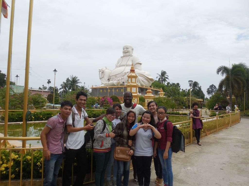 The next day I was picked up by a tour guide really early. A mid-aged Vietnamese man who introduced himself with the words: “My name is Dong! Easy to remember, because it is the sound that you hear when you beat the drums..” and subsequently did a loud impression of this sound: “Dong!! Dong!! Dong!!!” One thing for sure, I won’t forget his name. Hahaha. I was on a bus with predominantly Vietnamese people. The guide would tell a long story about a sight in Vietnamese and then give a short translation in English. And believe me when the guide says: “And right from you, you see a beautiful rice field” after a 5 minute long monolog in Vietnamese, that can’t be the full translation. That’s the really, really short version Hahaha.