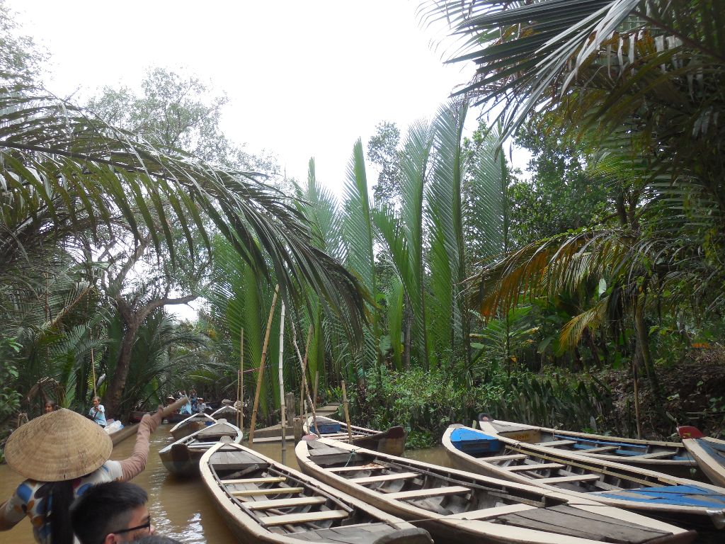 After a 26 hour bus trip I arrived in Saigon by evening. Saigon is the true metropole of Vietnam. Crowded streets, billboards, more neon lights. I hadn’t booked a ho(s)tel yet. Together with a guy from Germany and 5 girls from Argentina we searched for a place to stay. They settled with the first place we came across. I decided to search further. I had an address of a Capsule hostel scribbled down. I would try that one, but as I was walking through the crowded streets of Saigon with all my belongings it suddenly started to rain heavily. I was tired, didn’t had no proper sleep for two days. Luckily the capsule hostel was just a few 100 meters away. I decided to go and stay there! Because I had only two full days in Saigon I booked two tours. The Mekong Delta tour with the floating Markets and the Cu Chi tunnel tour. I mostly stressed the importance of the floating markets, which I really wanted to see.