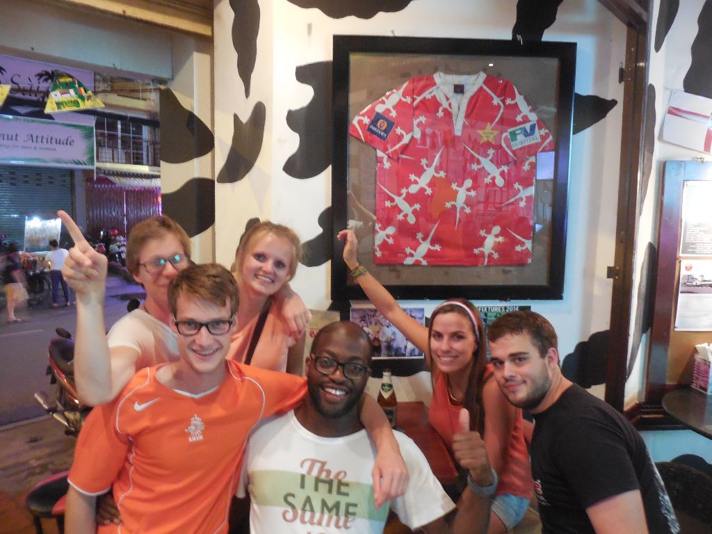 That evening Holland was playing against Mexico. 11 pm local time. I went to a bar to see the match. There I bumped in to Tom, the German guy again. The bar was full with orange shirts. Me not being a great soccer fan, I realized this was my first time watching a game in a bar, ever! I really liked it! But after Holland reached an disadvantage of 1-0, we really went bonkers when the 1-1 was scored. I liked the tension in the bar and the relieve when the 2-1 was scored out of a penalty. I won a bet against Tom. After the 1-0 he was sure Holland would hit the plane back home. Man was he wrong! Hahaha. Một hai ba, yo (one, two, three, yo)! The Vietnamese way of saying Cheers! It literally means 1, 2, 3, Cheers!