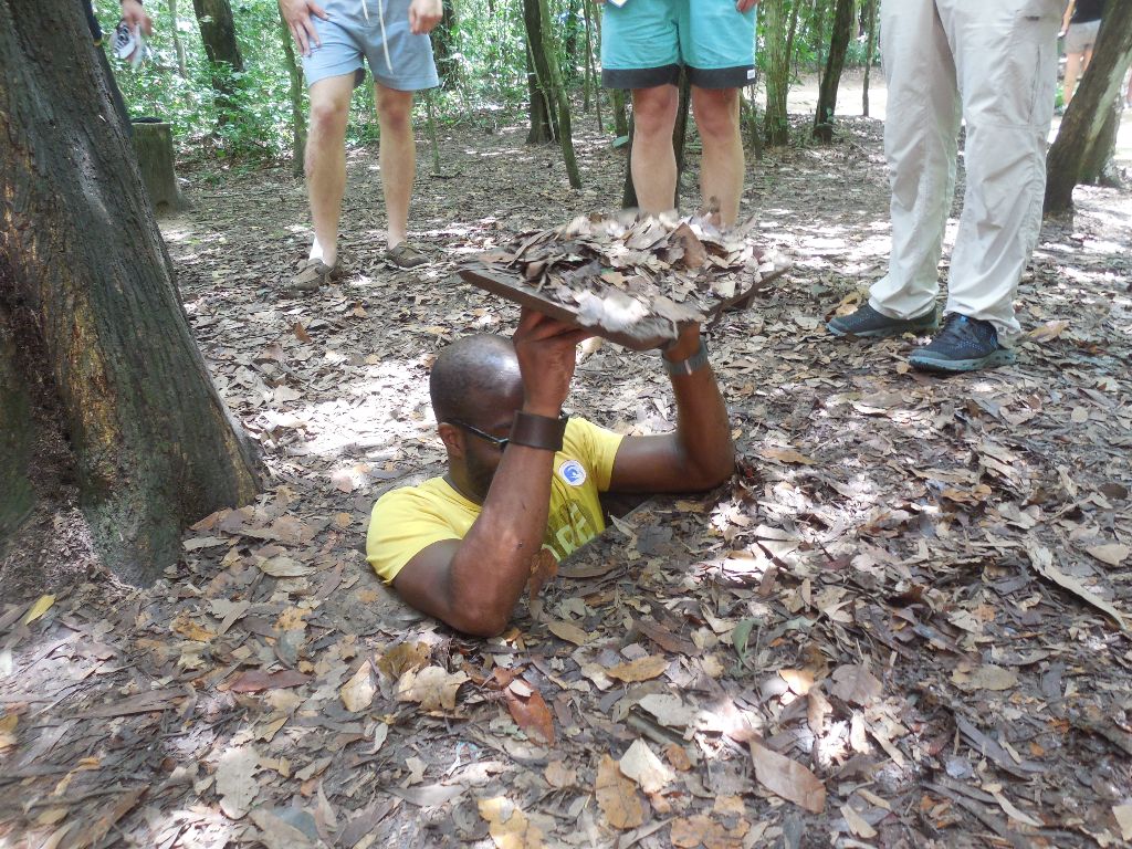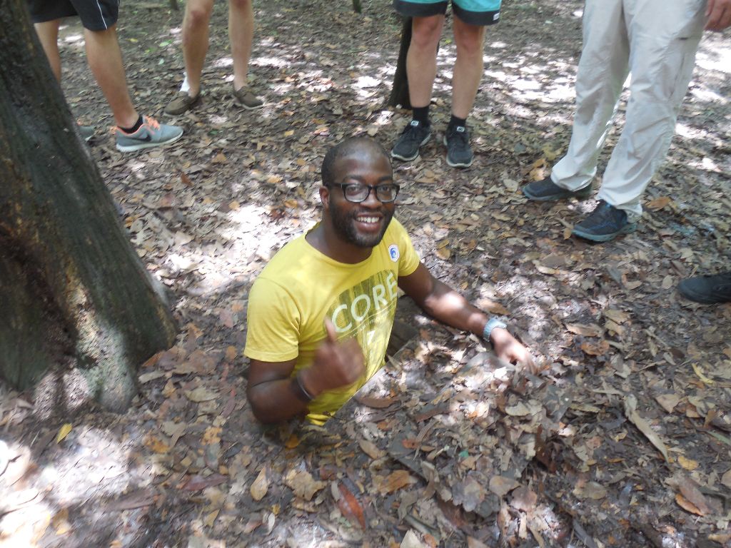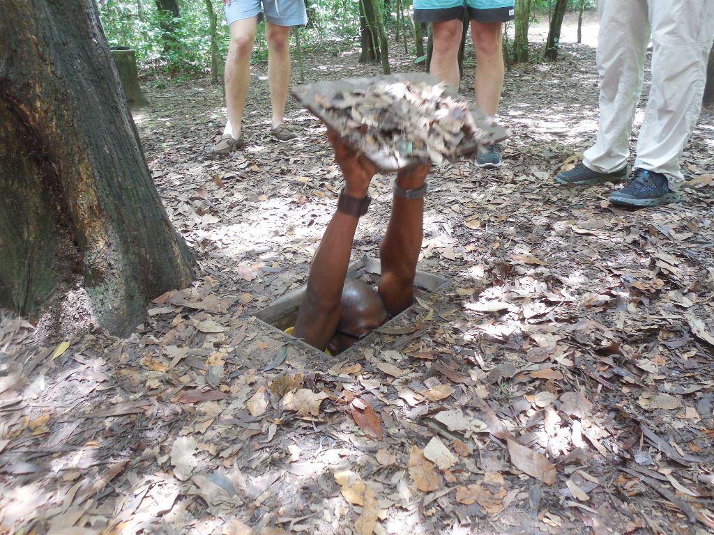 The tour started with a polygon 50s documentary of the Vietnam war. After the documentary the guide made a joke: “You felt a sleep already!” He also knew the documentary was lame Haha. After that we visited a hidden tunnel entrance and even got the change to go in to the tunnel entrance and hide. By means of being funny, the guide made sexy noises while people dipped themselves in to the tunnel hole. Like really!!? Especially the woman looked at him like: Is he actually doing this? Pretty awkward. Hahaha