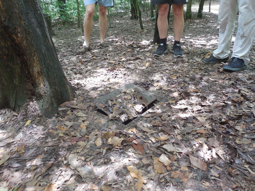 Today I had a tour to go and visit the Cu Chi Tunnels. One of the most famous tunnels used in the war against the Americans. The Viet cong had a super sophisticated tunnel network, consisting of three levels 3m, 6m and 10 meter deep. It was one of their main advantages during the war. The entrances of the tunnels were hidden. They could pop up out of nowhere and disappear out of nowhere.