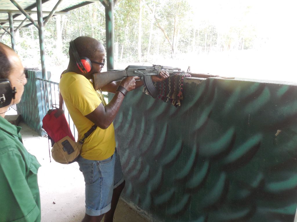 Then I noticed the war sounds becoming louder and louder. It seemed that these war sounds were real! There was a shooting base where you could fire an actual M16, AK47 or bazooka. Even though I am not a gun lover, I saw this as a once in a lifetime experience I had to experience. I choose the AK47. I got to fire 10 bullets. The sound and the kickback are super intense. But if you imagine the killing potential of this gun it is also a bit creepy!