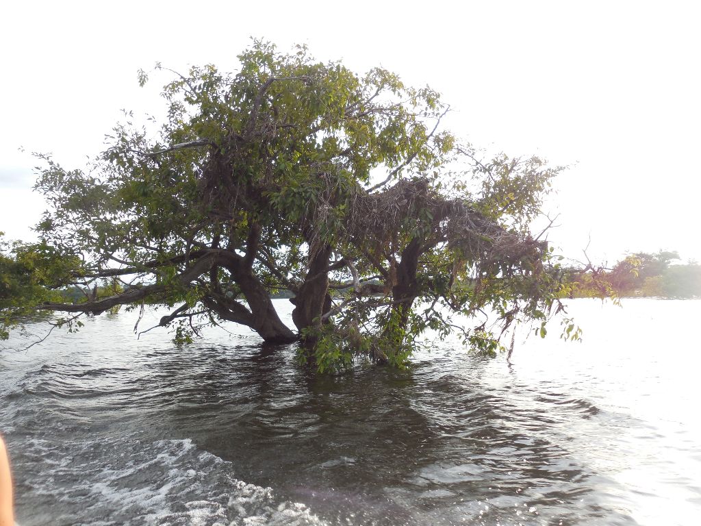 It was raining season. This means the Amazon was partially under water. We where actually sailing between the top of the trees where normally at dry season you could walk at their feet. You could actually see the watermarks on some trees, where the water had been higher. Could you imagine this!!?? A jungle filled with more than four meters of water and we are flowing on it! And the place where we were sailing is the same place you look up to in the dry season, when you walk the forest. Amazing!