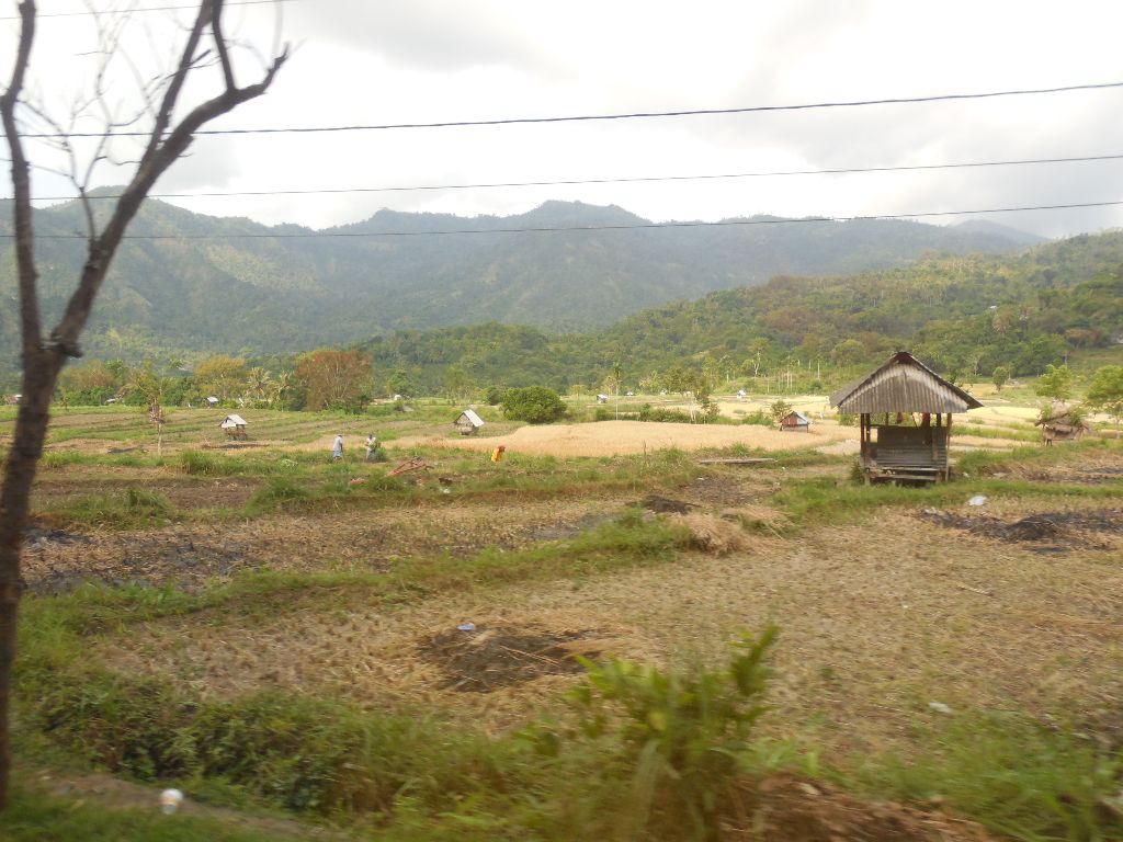 Later on, we saw another smoke surrounded stand. Satay! And this time it was the Kambing satay! Jeej! ;-) The driver waited around the corner and I went alone to order the satay. We were in a remote village and the stand was run by a few teenagers. Probably the children of the owner. They were really surprised when I ordered, and giggled the whole time. They didn’t understand a word of what I was saying, found my accent funny, but understood that I wanted 20 satays. They showed me the price on a calculator, giggling again. And then when I left, one of the boys said in a bit nervous, but clear manner: “Thankuu ferry mutsj!” and the others chuckled loudly. Proud at their brother that he just spoke English with a falang! Hahah. Funny! And the driver was right, it was really nice! But to be honest, I like the chicken more. Hahaha. We stopped at one of the rice terraces along the road. The driver had explained me all about the rice terraces, how they needed large sums of water at the beginning when they are still young, how the water dries up later. He also explained what the flags were for, which you see on all the rice terraces. The flags were all connected to a system of threads. Sometimes a flock of birds or a swarm of insects attack the rice terraces. When this happens, the farmers pull the main thread so all the flags start moving, thus scaring the birds or insects away. Pretty genius! And because he had promised me to show me how the rice really looks like when it is growing, he stopped here. We took a stem and he showed me the rice inside the sheaths and explained me how they use machinery these days to extract the rice. In the past, they used to smack the stems against the ground manually, to get the rice out. And finally he told me about the Arak which is an illegally, local brewed ricewine.