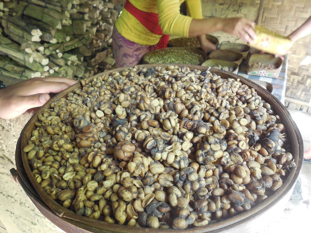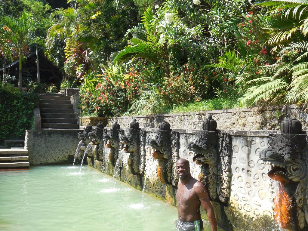 The next day I went with a driver to do some sight seeing. We did a coffee tasting north of Bali. There I tasted Coconut coffee, Vanilla coffee, Ginsen coffee, Balinese coffee and also some teas like Lemongrass tea, Ginger tea, Tumarec tea, Mangosteen tea. The Ginger tea tasted like Surinam “Gember Bier”, but then warm. I tasted some Rosela and some real chocolate cacao without sugar as well. And believe me, whithout sugar it has nothing to do with the chocolate milk as we know it hahaha. All of the substances were good for some part or organ of your body. One type of coffee was good for the heart another type of tea was good for the stool, yet again another one was good for the blood circulation etc. I guess I am a very healthy man now. Lol! But… the main character of the coffee tasting show, was… the Luwak coffee. The Luwak, a cat-like creature, selects the best berries to eat, in his stomach enzymes seep into the beans, it then poops out the beans and they make coffee out of that. Luwak coffee, unlike the Balinese coffee has low caffeine, but still Balinese coffee tastes like water after you drank the Luwak coffee.