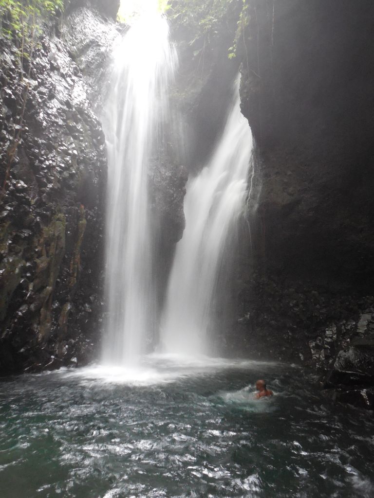 Next stop, the Git Git waterfalls. The driver informed me that there was a guide at that place who would bring you to the waterfall, but you had to negotiate the price with him. I asked him what was like reasonable. He said 100.000 is too much. As soon as I put my foot on the ground I was approached. This guide offered to show me all the three waterfalls for only 150.000 each. So this means 450.000!? And wasn’t there only one waterfall? Wow, this guy was really insulting my intelligence Hahaha. After some firm negotiation he offered to show me two waterfalls for 100.000. Then I figured that I came to see the one big waterfall and you can’t even swim in the other one. I finally said I’d do one for 50.000. He said 80.000 for one, which was still far from reasonable, but to cut him some slack and to contribute to the village I went for 70.000. When he walked me to the waterfall he smiled. “It was a good choice to only do the one waterfall”, he said. “The others are small and not even really nice.” Like really!? Can you believe this guy!? Hahaha. The waterfall was amazing though. I jumped of the rock in to the 5 meter deep pond beneath the waterfall. Went swinging on a rope to release it at its peak and fall in the water. Lol! Crazy, childish, but fun!