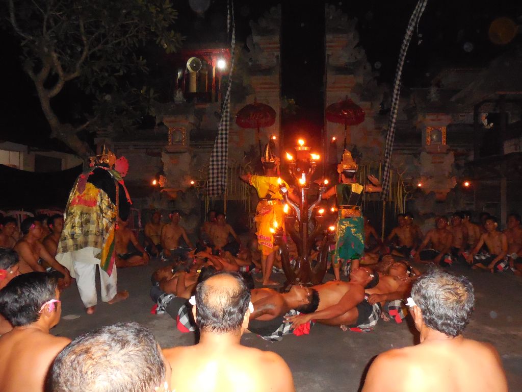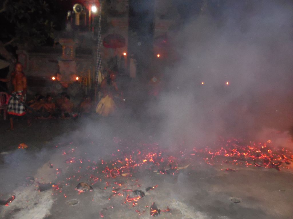 After diner I went to a traditional Kecak Fire and Trance Dance performance in Pura Taman Sari, performed by the group Sandhi Suara. The performance was held in an open air temple by night. I didn’t understand a word, but still I could follow the story a bit. At least I knew who the villain was. Haha. At the end they burned a pile of coal until it was glowing. Then a man with a stick horse circled around the pile of coal, supported by load singing. He then suddenly kicks the pile fiercely in to the audience, making blocks of coal just come to a stop a few centimeters in front of my foot. Of course I was on the front row and of course I was wearing short pants and slippers. Hahaha. They scraped the still glowing blocks of coal together until the pile flamed again and turned in to a glowing heap. Then the man with the stick horse repeated his kicking again. They did this like five times and each time the audience anxiously waited not to get burned. One time a female in the front row had to jump up however, otherwise she would surely got burned I think! Like wow!! #noregulations I still loved the show though! Amazing experience!
