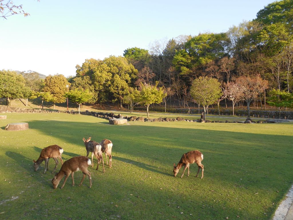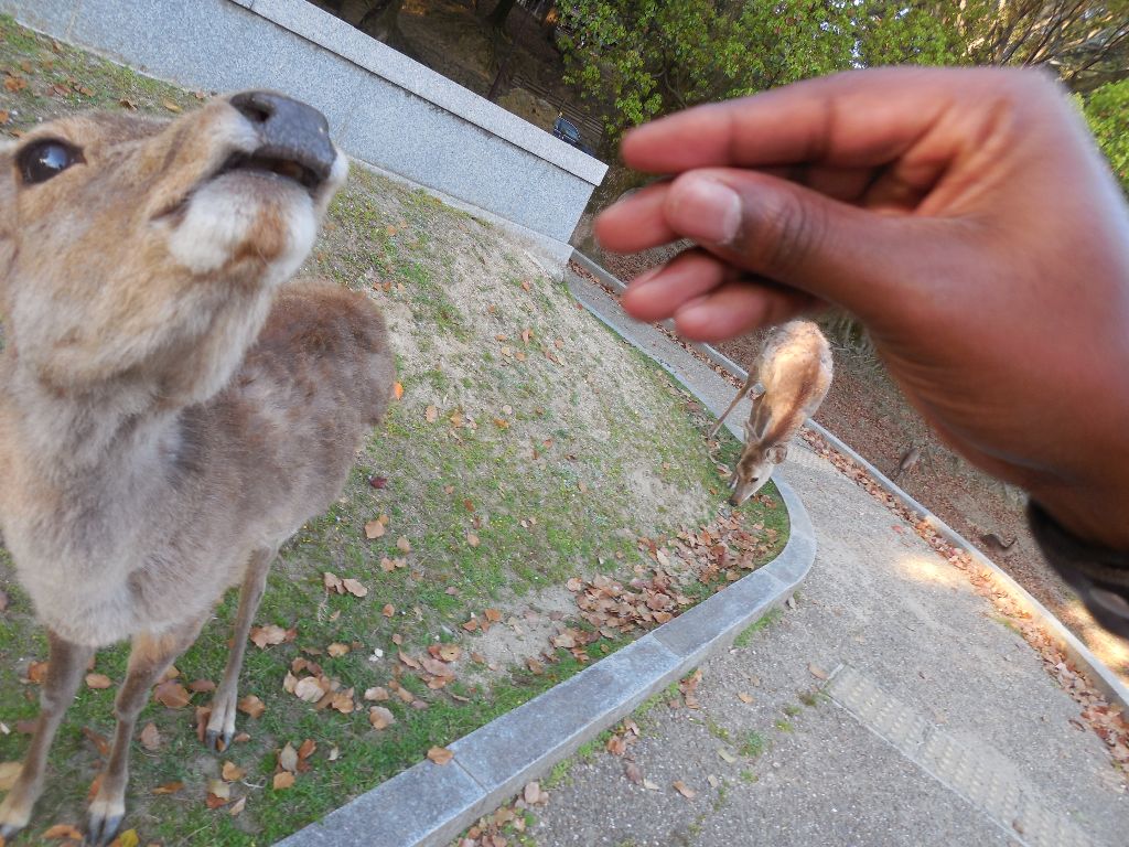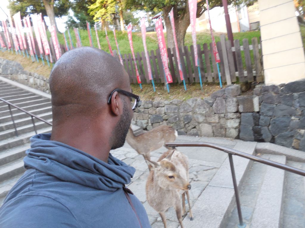 At the hostel I was also told about this city full of deers that walked freely everywhere, Nara. I decided to go and see it. It was only half an hour by train from Kyoto. I was told that the deers would leave at sunset. It was getting late, so I had to be quick. When I arrived I saw no deer at all. “If you walk this street all the way, you will see lots of them”, said the man at the tourist information desk. I walked the street and suddenly I saw a deer. Amazing!! But then a saw three more, four more and only a few meters further there was another flock. They where everywhere. I visited two shrines and also there where deers. Went to the park and even more deers. Crazy!!!