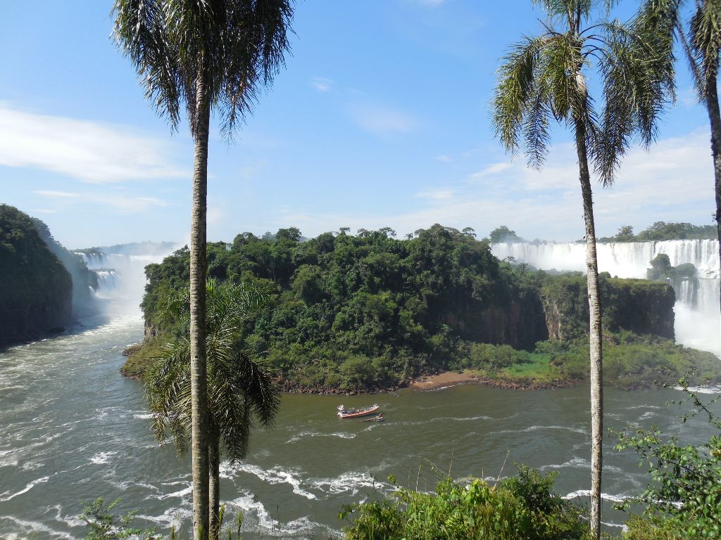The next morning I visited the Iguacu Falls. The Iguacu Falls are arranged in a way that seems like a reverse letter “J”. The border between Brazil and Argentina runs through the Devil’s Throat. On the right bank is the Brazilian territory, which has just over 20% of the jumps of these falls, and the left side jumps are Argentine, which make up almost 80% of the falls. I went to the Argentinian side, because there is more to do there. It is just a 1.5 hour trip to the Argentian border. We gave our passport to the guide to get us across the border, entered the national park and hiked to the falls. You hear the sound of 1800 m3 water per second spewing falls from a distance. It is the place which is called the mirror of God, a wholly burial place for the native indians, a place with a lot of history and suddenly you are standing eye to eye with this indescribable wonder of nature. Simply breath taking! We took a boat that got us really close to the falls. So close that we completely got wet. We crossed the 2 km long bridge over the whole stretch of the rivers that end out in the falls to eventually come to the “Garganta del diablo” or “Devil’s throat”. This is were the falls turn in a curvature, the half circle of the reverse letter “J”. We stood on the landmark of the three frontiers, the meeting point of the three countries: Brazil, Argentinia and Paragauy. It’s crazy to imagine! What I feel during this trip is so big it is difficult to find the words!