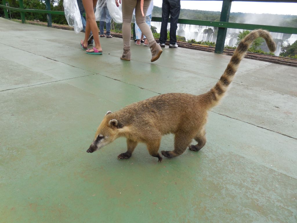 The next day I went to the Brazilian side of the Iguacu Falls. The Brazilian side has a lot less to do but gives a beautiful panoramic view of the falls and you can even walk a bridge that sets you amongst the falls. The Brazilian side is also more about making money. For example you can rent a helicopter to fly above the falls. The Argentinians don’t have that, because of the pollution. Also… and this is really crazy…. you have to pay an entrance fee, based on your country of residence. I went there with a guy from Denmark and we paid the head prize. On the other hand I think it’s pretty fair though. The Brazilian side also had a lot of coatimundis walking around. These creatures move in gangs, are really aggressive, can inflict serious scratches and the aim at your food. And still people are dum enough to feed them. Wow! Finally I searched for the Cataratas. I constantly saw this word and wondered what it was. I knew one thing. I had to see the Cataratas. Then I found out that Cataratas is Portuguese for waterfall and I guess…. I have… kind of… seen those by now. LOL