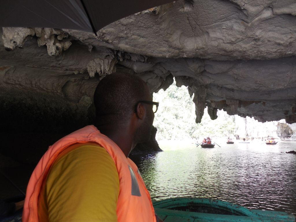 The sight was just as in the pictures and I can tell you it is a real unreal feeling to suddenly stand in one of the pictures you were admiring on your computer at home. Lovely! We took a bamboo boat to sail under the caves. Breathtaking! The boats were floating lightly and we had to get on them one by one. They were really small boats actually. When I got on to the boat I was supposed to put my foot in the middle. However I stepped slightly on the left. My weight almost made the boat tilt counter clockwise and me fall in to the water. Hahaha Lucky me! We sailed past the water villages. People who made houses on the water, out of their boats, because they were not able to afford land. The village even featured a school for the children.
