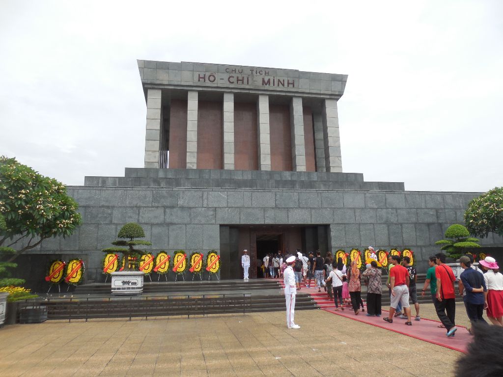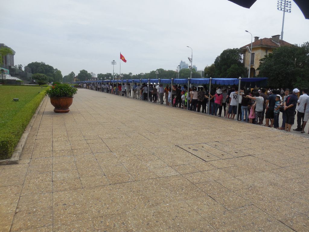 The next day there was no power in the hotel. Here in Vietnam power outs are quite normal. I brushed my teeth in the dark and went down stairs to the reception. “Yeah, power down between 9.30 am and 3 pm”, they said. Wow! The government can just do that. I went to the Ho Chi Minh Mausoleum there was literally a line of at least one kilometer, but it moved real quick. The tempo was the same as a normal walk, so before I knew it I was there. The closer I get to the Mausoleum the stricter it got. Soldiers were walking around, fiercely telling people to keep silence. Then the line entered this big building and in to the room where he lies. You see him laying in a glass coffin in an heavily air cooled space. Impressive! but also kind of sad if you think about the fact that he really wanted to be cremated. However the government decided else. In the same walking pace, the line passed the glass coffin and before you knew it, you had left the building. However with a sight on your retina that was there to stay for a while